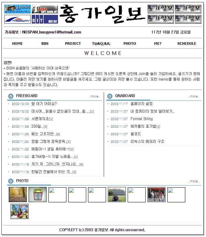 워드프레스로 옮기기전 홍가일보 History